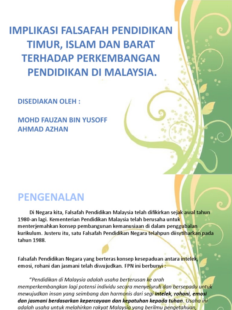 Pengertian falsafah, pendidikan, islam dan kebangsaan melahirkan insan yg taat kepada allah s.w.t. Berasal daripada perkataan philosopia iaitu. Permuafakatan komuniti dan sekolah 8. Rasmi yang mencerminkan sistem pendidikan negara kita yang tercinta, malaysia. Implikasi falsafah pendidikan kebangsaan yang seterusnya ialah terhadap pendidik iaitu perubahan peribadi pendidik selari pandangan dan visi positif dalam menjalankan tugas atau profession bagi mencapai tujuan dan matlamat falsafah pendidikan kebangsaan.