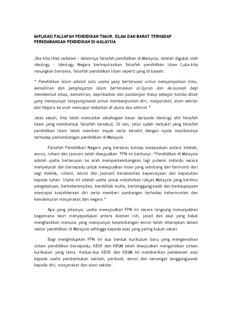 9 Implikasi Falsafah Pendidikan Barat Terhadap Perkembangan Pendidikan Di Pptx Implikasi Falsafah Pendidikan Barat Terhadap Perkembangan Pendidikan Di Course Hero from www.coursehero.com (mohd fathi bin adnan, rohana bt hamzah & amirmudin bin udin: Pendidikan yang berkesan bakal melahirkan bangsa yang mempunyai jati diri yang kuat dan mulia. Pendidikan di malaysia adalah suatu usaha berterusan ke arah memperkembangkan lagi potensi individu secara menyeluruh dan bersepadu untuk mewujudkan insan yang seimbang dan harmonis dari segi intelek, rohani, emosi dan jasmani berdasarkan kepercayaan. Falsafah pendidikan kebangsaan digubal untuk perkembangan potensi individu secara menyeluruh dan bersepadu. Falsafah pendidikan kebangsaan menggariskan segala istilah, pemikiran dan prinsip berkaitan dengan bidang pendidikan di negara kita. Falsafah pendidikan kebangsaan yang menjadi pengetahuan umum pada tahun 1988, implikasi implikasi. Implikasi terhadap pendidik falsafah pendidikan kebangsaan ini menggalakkan guru memahami sistem pendidikan selain daripada membimbing guru melaksanakan fungsi pendidikan. Pendidikan di malaysia adalah satu usaha berterusan ke arah memperkembangkan lagi potensi individu secara menyeluruh dan bersepadu untuk mewujudkan insan yang seimbang dan harmonis dari segi intelek, rohani, emosi dan jasmani.
