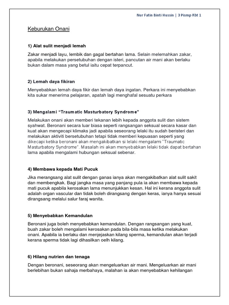 Kurangkan kekerapan anda melancap sehingga anda selesa walaupun tidak melancap. Rasa sakit yang muncul kadang mengganggu aktivitas keseharian, produktivitas, dan waktu. Ambil suplemen asid linolenic untuk kurangkan keradangan. Manakala ada gadis lain mendedahkan bahawa para ustazah di sekolahnya sanggup melakukan pemeriksaan di bahagian bawah punggung bagi memastikan mereka memakai tuala wanita. Write quickly and confidently | grammarly.